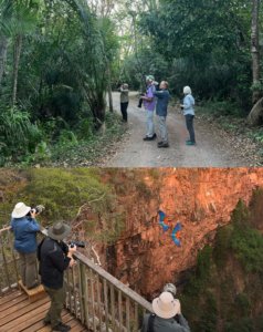 Spend the entire day photographing Red-and-green Macaws at a spectacular natural sinkhole where dozens of pairs nest and roost, along with a few Blue-and-yellow Macaws. This private reserve features two wooden terraces positioned at the edge of the sinkhole—ideal spots for capturing macaws in flight, often below or at eye level. The surrounding habitat also hosts species such as Ferruginous Pygmy-Owl and Plush-crested Jay.