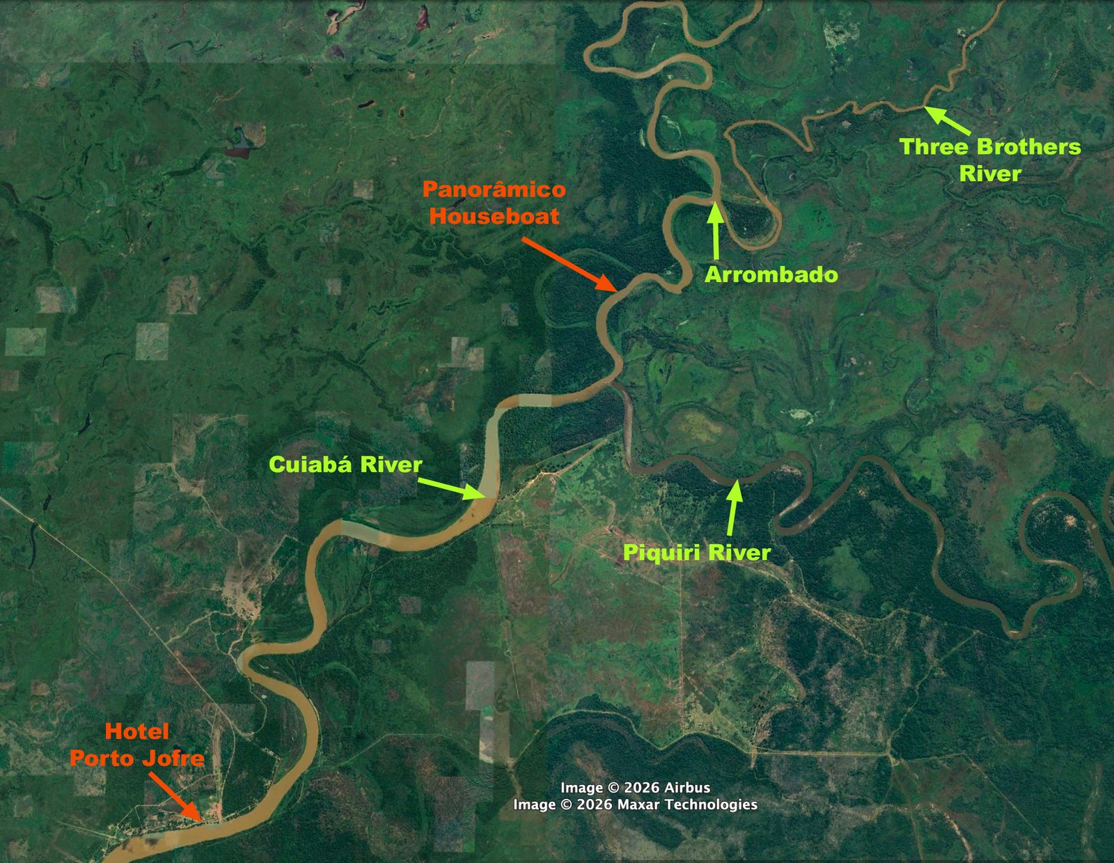 The houseboat we use, Panorâmico, is typically anchored about five minutes by boat from the area known as “Arrombado”, one of the most productive and well-known jaguar areas in the region. While there is, of course, much more territory to explore, Arrombado is often considered the informal “gateway” to the core jaguar habitat and serves as a useful reference point.